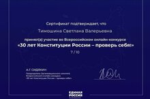 Во Всероссийском онлайн конкурсе, посвященному 30 летию Конституции России приняли активное участие педагоги Уруссинская СОШ№2