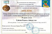 Мәктәбебезнең 10 нчы сыйныф укучысы Гайсин Равиль "Татар әдәбиятында һәм сәнгатендә Габдуллла Тукай премиясенә ия булган шәхесләребез иҗаты" буенча III төбәкара фәнни-гамәли конференциядә катнашып, 2 урын алды.Җитәкчесе:Юсупова Р.Р