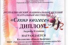 Мәктәбебезнең "Ямьле балачак"театр төркеме"Сәхнә көзгесе" Республикакүләм милли балалар театр фестивалендә II дәрәҗәле Лауреат исеме яулады.