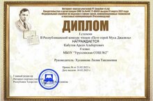 Обучающийся 4 класса Кабутов Арсен занял 1 место в Республиканском конкурсе чтецов " Поэт - герой Муса Джалиль"