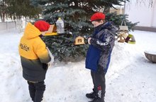 Члены юнармейского отряда "Патриот" приняли участие в акции "Покорми птиц зимой". Ребята из подручных средств смастерили кормушки и вывесили их с кормом на территории школы