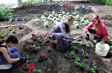 Сегодня ребята с трудового лагеря пропололи цветник, полили цветы, облагородили вокруг ёлок, убрали камни и мусор, разобрали ванночку для воды и выбросили осколки от камней.