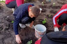 Лагерь труда и отдыха очищал территорию школы от строительного мусора, переносили профнастил, поливали и рыхлили землю, где посажены цветы.