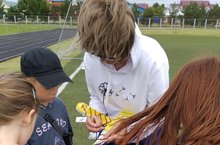 Традиционная организационная линейка, зарядка, завтрак и начался насыщенный лагерный день. Руководитель детского лагеря провела с ребятами инструктаж по технике безопасности в пришкольном летнем лагере.Под девизом "Знай правила дорожного движения" в рамках "Безопасные каникулы" для ребят начальник Бавлинского филиала ГУ "Дирекции финансирования научных и образовательных программ безопасности дорожного движения Республики Татарстан" Игнатьева Р.И. организовала и провела на стадионе увлекательное мероприятие по БДД. Ребята вспомнили правила дорожного движения и показали свои знания на практике!
