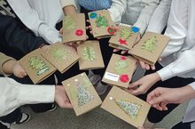 В рамках Дня волонтёра учащиеся 5-х классов на уроке технологии подготовили новогодние открытки для отправки с гуманитарной помощью ДВО "Доброшвеи".