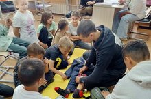 Сегодня в пришкольом лагере "Лучик" снова интересный день- знакомство и тренинг с тренажёром "Гоша' и наведение переправы при помощи веревок. Юнармейцы - вожатые в доступной форме показали ребятам приемы оказания первой помощи, правильному звонку по номеру 03, приемам искусственного дыхания, правилам наложения жгута и транспортировки пострадавшего. Желающие попробовали провести все самостоятельно. Далее, из-за небольшого дождя, в спортивном зале ребята под руководством вожатых, которые принимали участие в республиканских соревнованиях "Зарницы" и "Содружества пограничников" навели"переправу" через "реку", попробовали свои силы в умении переправиться на другой берег с аптечкой, и провисели на страховочной обвязке. Думается, что такой мастер-класс оставит в памяти необходимые знания и умения в экстренных ситуациях. Спасибо вожатым!