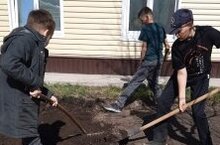 Учащиеся 8а класса работали на пришкольном участке под руководством учителя Шайгардановой И. Н.