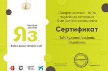 Дунаева Әлфия, Зәбихуллина Әлфинә, Мөхәммәтшина Венера һәм Ризванова Гүзәл (1 нче сыйныф укучыларының әниләре), шулай ук мәктәбебезнең география укытучысы Замалтдинова Сания Хәлимовна да “5” билгесе алды. Котлыйбыз! Калган диктант язучыларга катнашучы сертификаты тапшырылды. Алдагы иҗади эшләрдә дә уңышлар теләп калабыз. Һәрвакыт шулай актив булыйк!