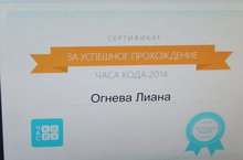 Сертификат за успешное прохождение Часа кода 2014 08.12.2014