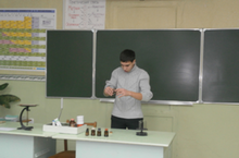 7 февраля 2014 года в рамках республиканской недели химии в Айшинской СОШ занятие с восьмиклассниками " Решение проблемной ситуации: способ разделения смеси веществ с заданными физическими свойствами".