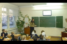 В рамках декады начальной Айшинской СОШ учитель начальных классов Камалиева Л.Р. показала урок русского языка в 1 а классе. Проводилась работа по изучению написания строчной буквы "м". Ребята работали с мультфильмом.