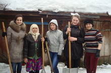 В весенние каникулы учащиеся 9-10 классов во главе с педагогом-организатором Новиковой Е.В. посетили пожилых людей села Айша и помогли им убрать снег со двора.