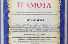 Татарстан Республикасында Туган телләр һәм халыклар бердәмлеге елы уңаеннан шәһәребезнең 9 нчы лицеенда “Иң яхшы сочинениеләр язу остасы” дип исемләнгән Республика конкурсының муниципаль туры булып узды. Бу чарада Әйшә урта мәктәбенең 8 нче сыйныф укучысы (укытучы Бачкова Э.В.) Шакирова Камилә катнашты. Ул “Рус культурасын татар телендә” номинациясендә катнашып, I урынга лаек булды. Афәрин, Камилә! Сине чын күңелдән котлыйбыз. Алдагы иҗади эшләреңдә дә уңышлар теләп калабыз.