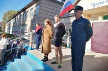 Начальник отделения профилактики в Зеленодольском районе ГБУ БДД Зульфия Вазиховна Шакирова поздравила коллектив школы с Днем Учителя. Сотрудники ОГИБДД г. Зеленодольска провели беседу с учениками начальных классов о безопасности на дороге и подарили детям мешки для обуви со светоотражающими элементами.