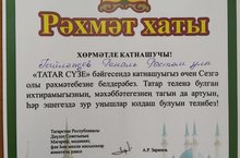 Татарстан Республикасы Президенты каршындагы Татар телен саклау һәм үстерү мәсьәләләре комиссиясе «TATAR СҮЗЕ» бәйгесен игълан итте. Мәктәбебезнең 3 нче сыйныф укучысы Гыйләҗев Реналь (укытучы Бачкова Э.В.) шушы бәйгедә ТРның халык шагыйре Фәнис Яруллинның «Анам теле» дип исемләнгән шигыре белән катнашып, Рәхмәт хатына лаек булды. Аңа туган теленә карата ихтирамы, мәхәббәте тагын да артуын, укуында һәм иҗади эшләрендә зур уңышларга ирешүен теләп калабыз.