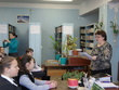 Беседа уч-ся 7 классов с библиотекарем Айшинского сельского поселения в рамках месячника безопасности.