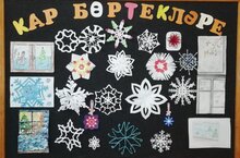 Мәктәп укучылары яңа елга әзерлек чаралары кысаларында актив рәвештә кар бөртекләре ясап, күргәзмә оештырдылар.