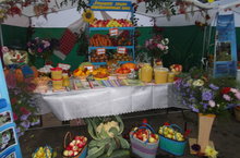 Без исә мәктәп бакчасында үстергән яшелчә һәм җиләк-җимешләрне алып бардык, үз мәктәбебезне матур гына күргәзмә белән әлеге чарада күрсәтә алдык дип әйтә алабыз.