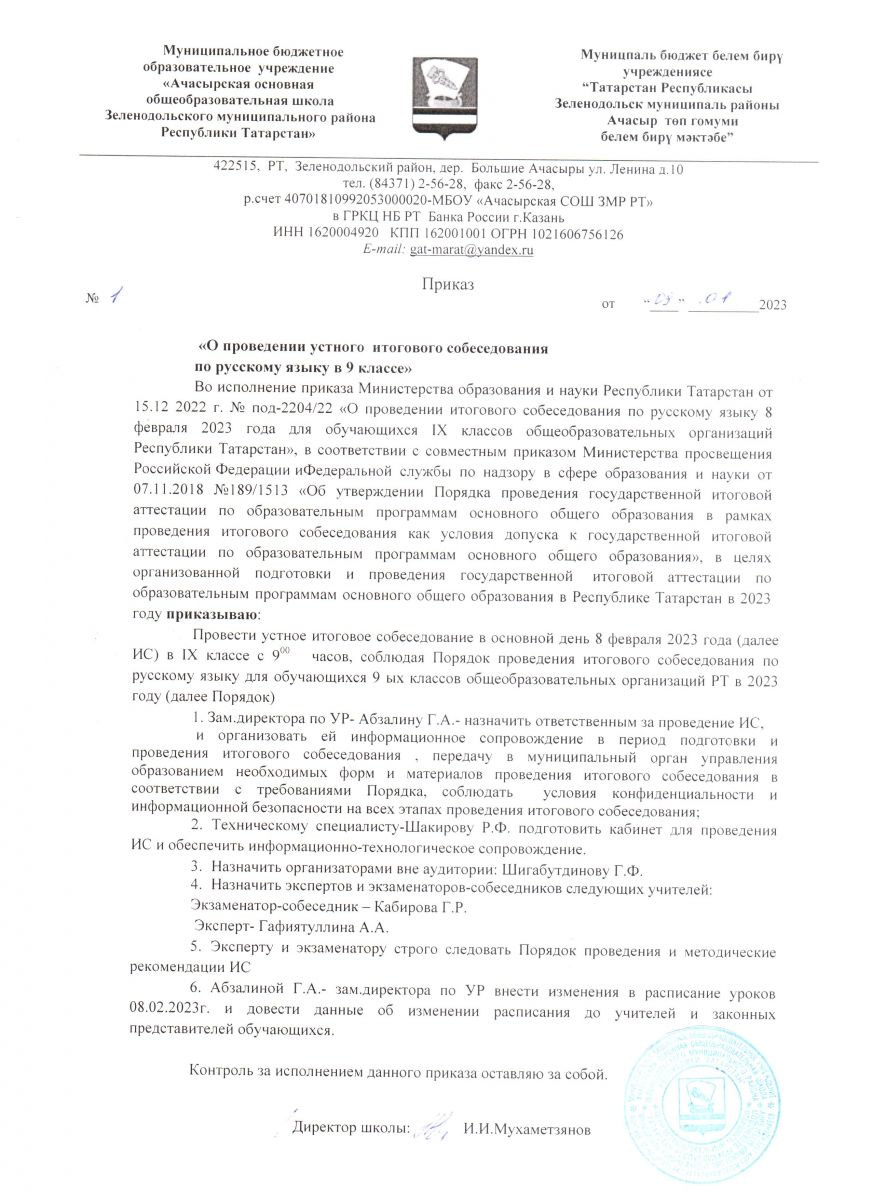 Приказ о проведении итогового собеседования по русскому языку.jpg