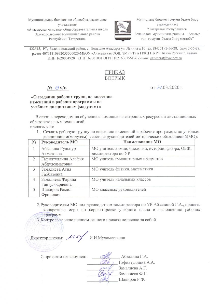 | Короткое название: | МБОУ "Ачасырская ООШ ЗМР РТ" |