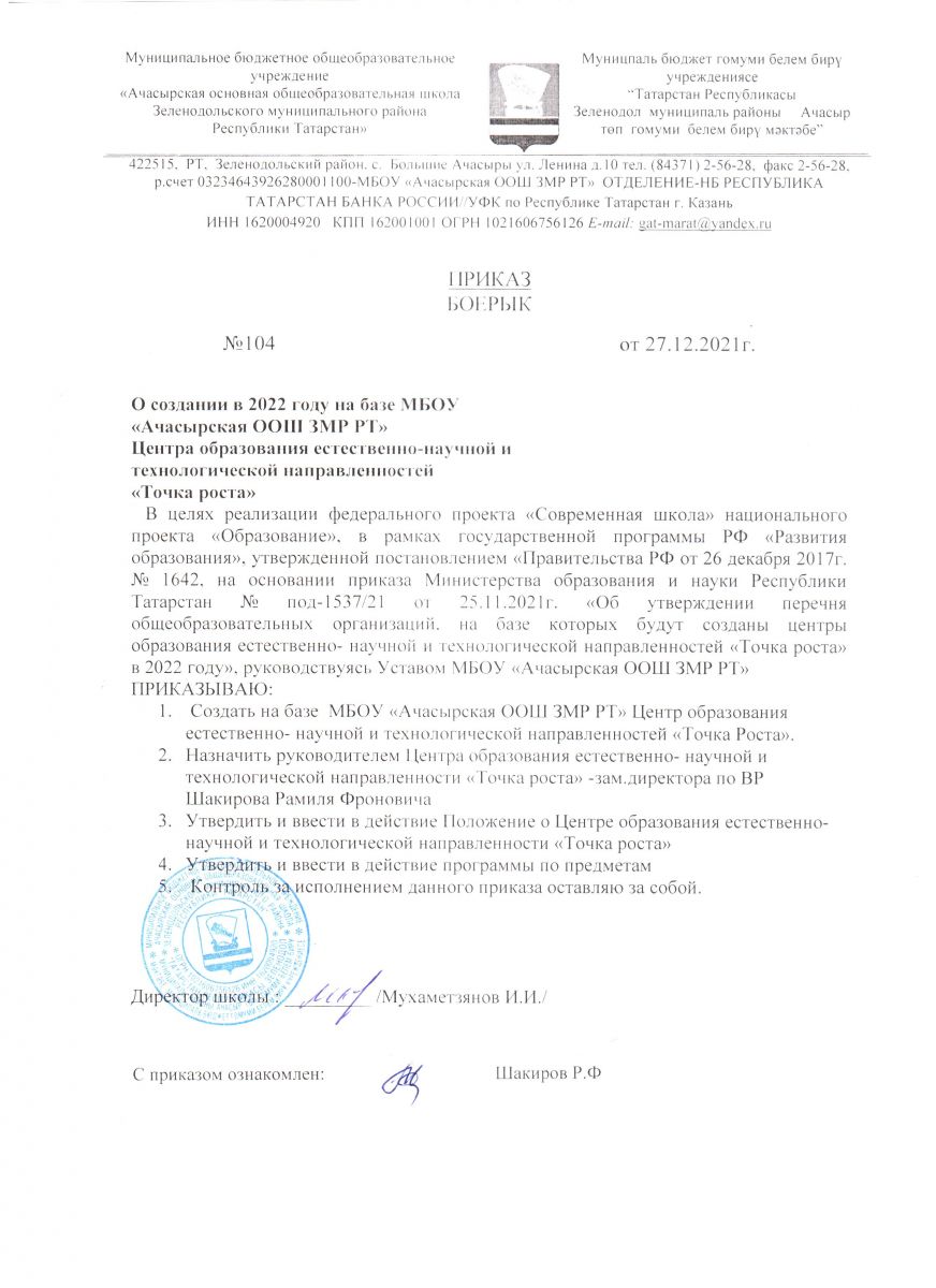 Иные локальные акты, регулирующие деятельность центра "Точка роста"