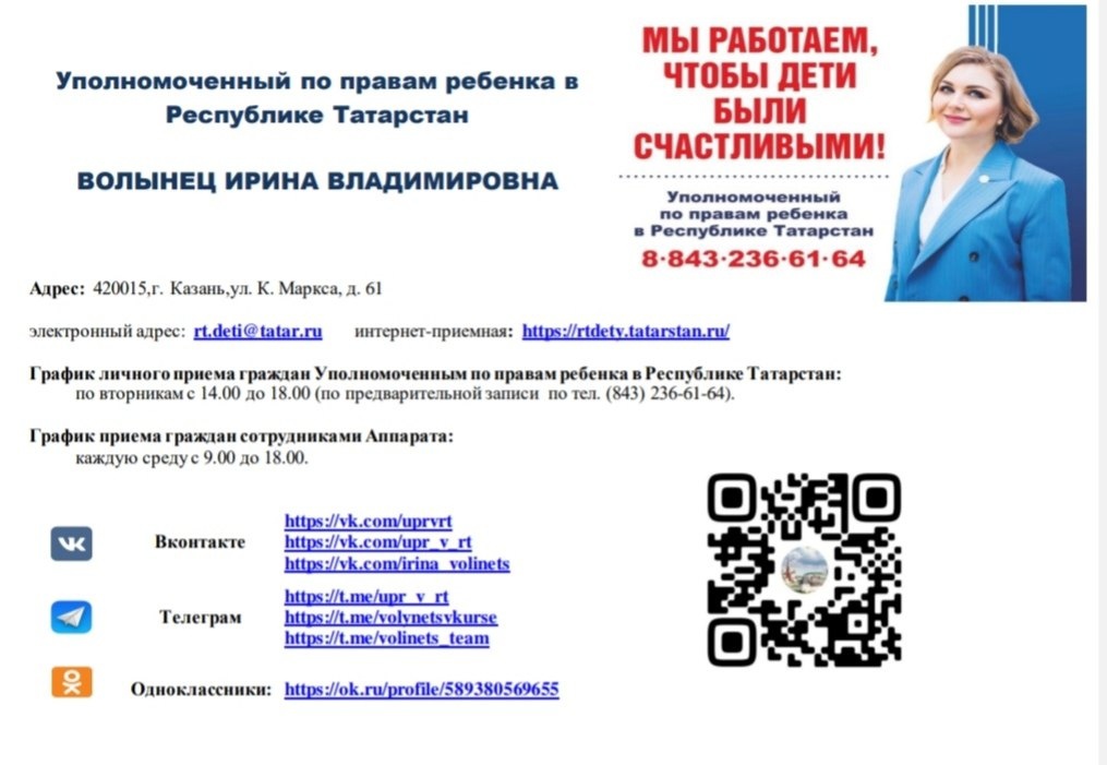 Уполномоченный по правам ребенка в Республике Татарстан - Волынец Ирина Владимировна