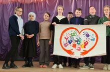 В школе идёт декада инвалидов. Ученики принимают участие в акции "Буклет толерантности".
