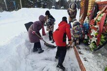 Ученикам страших классов и отряду "Добрыня" пришли на помощь ученики 4 класса. Они расчистили территории обелисков от снега.