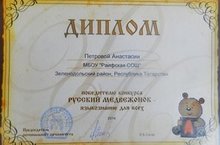 Пришли результаты международного конкурса "Русский медвежонок". Ученица 11 класса Петрова Анастасия набрала 100 баллов и заняла в регионе 21-26 место. Мы ее поздравляем!