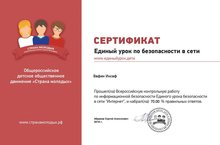 Сегодня учащиеся нашей школы прошли тестирование "Безопасность в сети интернет".В конце теста обучающийся может узнать сразу результаты своего тестирования, а также получить бесплатный электронный документ об успешном прохождении контрольной работы и об участии в Едином уроке безопасности в сети «Интернет» в 2018 году со своими результатами.