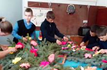 Бүген укучылар мемориал һәйкәл янына куяр өчен үз куллары белән венок эшләделәр. Бу эштән бер генә сыйныф та читтә калмады.