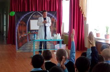 Сегодня к нам приехал шоу «Четыре стихии Природы». Во время шоу дети познакомились со стихиями природы: Воздух, Земля, Вода, Огонь. В каждом блоке, они наглядно на экспериментах узнали свойства каждого элемента, почему они важны для человека. Дети поучаствовали в интересной дискуссии, узнали много познавательных и научных фактов, так же принимали участие в активных играх и интересных экспериментах. Нам очень понравилось.