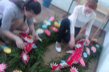 Каждый год в нашей школе выпустники школы делают венок для 9 мая. И в этом году учащиеся сделали красивый венок своими руками,вкладывая душевную теплату и уважение к Ветеранам Великой Отечественной Войны!