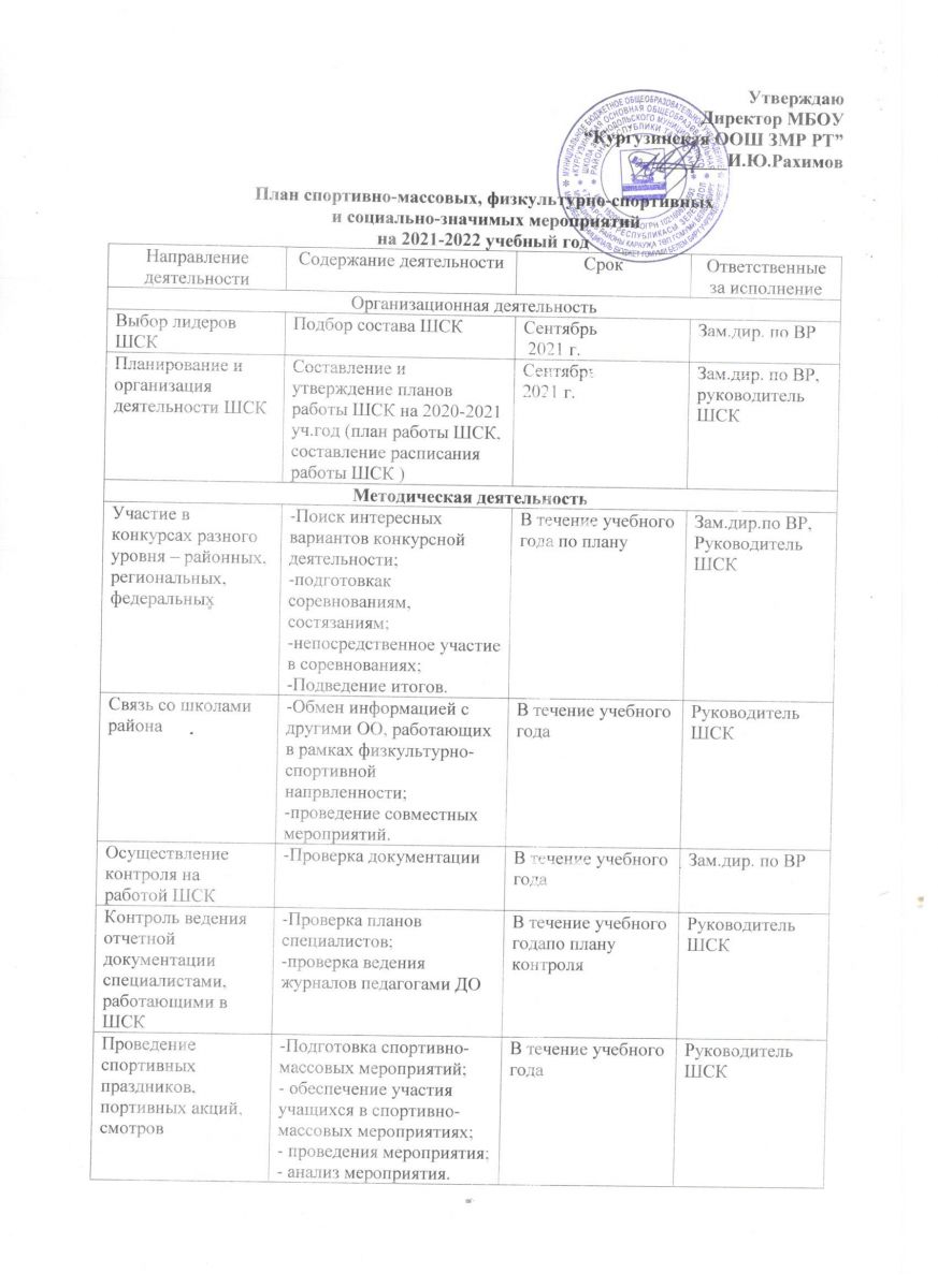 План спортивно-массовых, физкультурно-спортивных и социально-значимых мероприятий на 2021-2022 учебный год