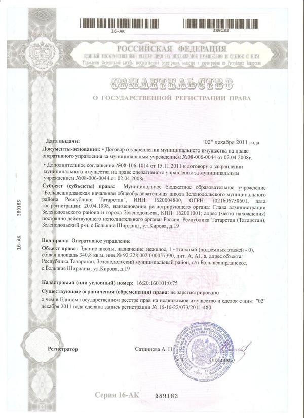 Адрес: 422500, РТ, Зеленодольский район, с. Большие Ширданы, ул. Кирова, д. 19