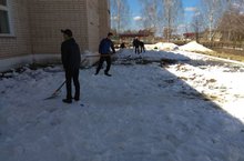 Сегодня учащиеся 8,9 классов вышли на средник. Раскидали снег на территории школы.