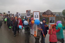 Ученики нашей школы приняли участие в международном общественном движении по сохранению личной памяти о поколении Великой Отечественной войны. Несмотря на плохую погоду, учащиеся, неся в руках транспаранты с фотографиями своих прадедушек и пробабушек, колонной прошли по главным улицам нашего села.
