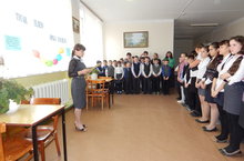 Татар теле укытучысы Зарипова Р.Ә. атналыкның бай программасы белән таныштырып китте, укучыларны активлыкка өндәде.