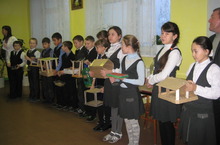 Учащиеся 5 класса выступили сегодня с замечательным начинанием в эту зиму. Все учащиеся смастерили своими руками из подручных материалов кормушки для зимующих птиц. На школьной линейке они продемонстрировали свои творения. В кормушки уже насыпаны корма для разных птиц. Прямо с линейки вместе с классным руководителем Яруллиной Алиной Айдаровной они отправились развешивать кормушки на радость птицам, которым уже нелегко - ведь на улице настоящий мороз.