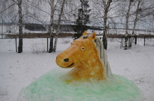 Каждый день вырастает какая-нибудь снежная фигурка в нашей снежной "деревне". Сегодня поутру учащихся радовала скульптура лошади - символа Нового, 2014 года. Остается только пожелать всем счастливого Нового года, успехов во всём, исполнения желаний, добрых и верных друзей, старательности в учёбе, счасья и радостей. Пусть всё это принесёт лошадь на своей могучей фигуре.