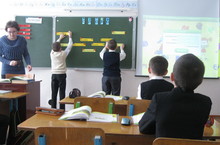 "Икеурынлы санга язып тапкырлау" дигән тема өйрәнү дәресе үтә дә кызыклы, үтә дә җанлы төстә оештырылган иде. Эчтәлекле презентаөия балага мисалларны эшләү юлларының алгоритмын искәртеп торса, төсле-төсле күргәзмә әсбаплар аңлау-аңлату эшен икеләтә мавыктыргыч итеп җибәрә. Балалар дәрестә бик теләп, яратып эшләделәр. Дәрес ИКТ кулланып үткәрелде. Карап утырган укытучылар үзләренә педагогик дәрт алып чыктылар.