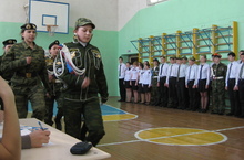 По старой доброй традиции сегодня в школе прошёл смотр строя и песни учащихся 5-11 классов. Каждый взвод (класс) серьёзно готовился к этому празднику. Были найдены настоящие армейские формы, сшиты головные уборы, подобрана одежда одного цвета и даже одинаковые причёски были у девушек одного взвода.