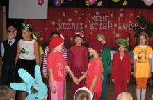 В нашей школе осенние праздники продолжаются. Учащиеся начальных классов сегодня отпраздновали "Осенний бал" с приглашением королевы Осени, нарядных овощей и фруктов, разных веселых литературных героев.