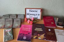 В школьной библиотеке работает книжная выставка, посвященная 77-летию Великой Победы. В нем поместились произведения, очерки о войне. Лилия Ильсуровна рассказала читателям о Великой Отечественной войне, представила книги. Содержание этих книг воспитывает в детях чувство гражданственности и патриотизма.
