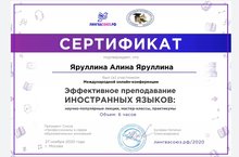 Учительница английского языка Алина Айдаровна участвовала в международной онлайн конференции "Эффективное преподавание иностранных языков".
