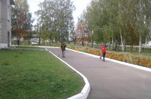 Көннәр салкынайтып, көзге болытлар килүгә карамастан, мәктәп территориясен чистарту һәм төзекләндерү дәвам итә.