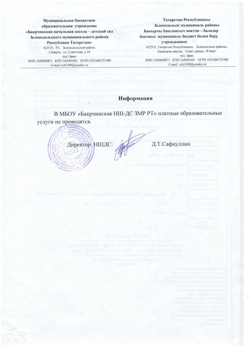 Муниципальное бюджетное общеобразовательное учреждение «Бакрчинская начальная общеобразовательная школа-детский сад Зеленодольского муниципального района Республики Татарстан"\"Татарстан Республикасы Зеленодол муниципаль районы Бакырчы башлангыч гомүми белем мәктәбе-балалар бакчасы" Муниципаль бюджет гомүми белем учреждениесе