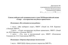 1 место в номинации "Здоровьесберегающие технологии" муниципального этапа XII Всероссийской акции "Спорт-альтернатива пагубным привычкам" 23.01.2016