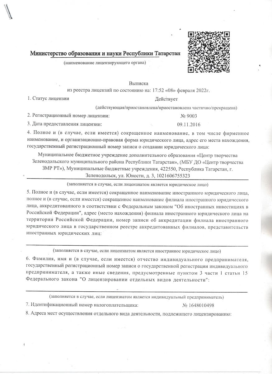 | Короткое название: | МБУ ДО "Центр творчества ЗМР РТ" |