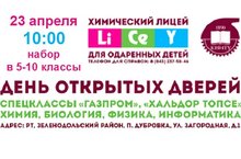 Лицей-интернат для одаренных детей с углубленным изучением химии – филиал ФГБОУ ВО «КНИТУ» приглашает на «День открытых дверей». Мероприятие состоится 23 апреля 2022 года в 10:00 часов. Администрация и педагогический коллектив лицея ответят на вопросы, касающиеся поступления, обучения и проживания.